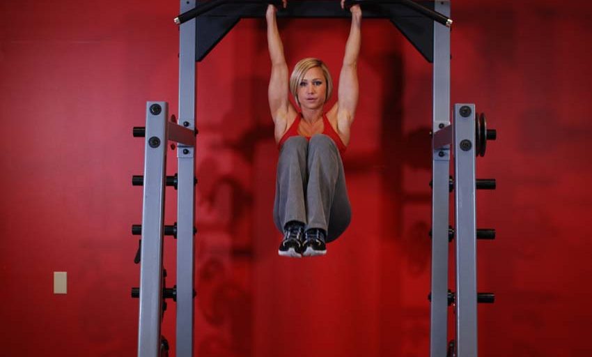 A more advanced version of this exercise is called toes to bar, where you will lift the legs in a straight position from hanging, up until they meet the bar above your hands. In the Garhammer the knees are bent and can be lifted directly up or to each side, so just play around with it. Aim to do 3 sets of 25-30 reps with a 2010 tempo.